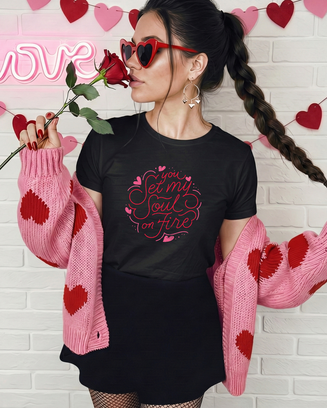 Ignite your spirit with Soul on Fire—a statement piece designed to turn heads whether you're out exploring town or relaxing at home. Crafted from lightweight 100% cotton, this comfortable essential keeps you cool and confident all day long. Perfect for February adventures or cozy movie nights by the beach, it's the bold declaration your wardrobe has been waiting for. Wear it, feel it, live it.
